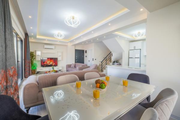 «Номер документа разрешения на жилье Министерства культуры и туризма: 48-6730» Милез Султан, наша роскошная вилла с частным бассейном, расположенная в Овачике, недалеко от региона Олюдениз с его бесконечным морем без волн и песчаным пляжем, к вашим услугам с великолепным видом и безупречным комфортом, который он обеспечивает. Вилла Милес Султан, обладающая всеми характеристиками, которые только можно найти в вилле, является идеальным вариантом для наших гостей и подарит вам незабываемые впечатления от отдыха. Очистка бассейна и уход за садом на нашей вилле выполняются ежедневно, и все это направлено на то, чтобы вы могли спокойно и полезно провести время в бассейне. Информация о вилле; 1.Спальня; Есть двуспальная кровать, шкаф для одежды, тумбочка, кондиционер, туалет и ванная. 2.Спальня; Есть две односпальные кровати, кондиционер, шкаф для одежды, туалет и ванная. 3.Спальня; Есть двуспальная кровать, тумбочка, шкаф для одежды. 4.Спальня; Есть две односпальные кровати, кондиционер, зеркальная полка, шкаф для одежды, туалет и ванная. Кухня: В современной американской кухне есть холодильник, посудомоечная машина, посуда, тостер, духовка, микроволновая печь, плита, посуда, набор столовых приборов, кастрюли, сковородки, стаканы и другое кухонное оборудование. Гостиная: Есть мягкий уголок, телевизор, кондиционер. Сад: Есть частный бассейн, джакузи, шезлонги, зонтики, зона барбекю (камин), обеденный стол, набор для отдыха. +О регионе Оваджик находится недалеко как от города, так и от Олюдениза, и это район, где расположены рестораны, кафе, бары и парки развлечений.