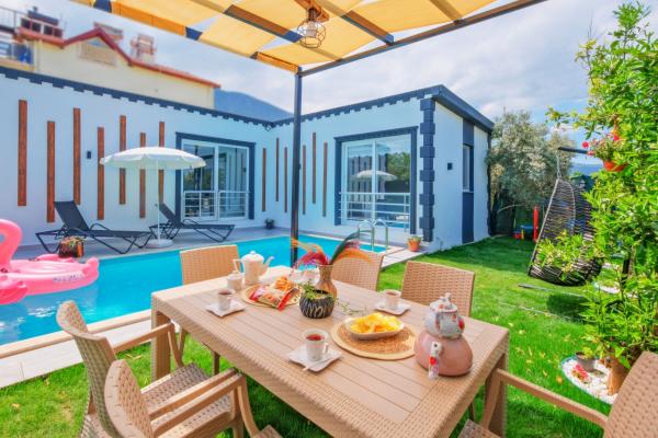 ''Разрешение на жилье Министерства культуры и туризма, номер документа: 48-446'' Вилла Sally расположена в Фетхие Каякей и имеет 1 спальню и вместимость 2 человек. Интерьер и экстерьер виллы спроектированы очень современно, а бассейн защищен. Это правильный выбор для наших гостей, которые заботятся о своей конфиденциальности. С джакузи в главной спальне вы можете наслаждаться удовольствием, которое ожидаете в течение всего года, в сопровождении вида на природу. Вилла, где вы будете просыпаться под пение птиц и неповторимо завтракать на фоне густых сосновых лесов, даст вам почувствовать, что вы сделали правильный выбор, как только сделаете первый шаг с ее оснащением, способным полностью удовлетворить ваши праздничные ожидания. 1. Спальня: Двуспальная кровать, джакузи, ванная комната, раковина, кондиционер. Гостиная: мягкий уголок, телевизор, кондиционер, журнальный столик Кухня: посудомоечная машина, чайник, встроенная духовка, холодильник. Сад: бассейн, шезлонги, зонтики, зона барбекю.