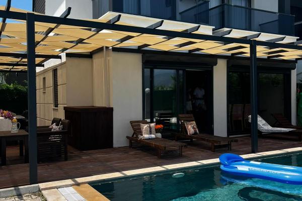 Министерство культуры и туризма Турецкой Республики Сертификат №: 48-8989 Аренда виллы – Фетхие / район Элдирек Описание: Вилла “Aslanı”, расположенная в районе Элдирек города Фетхие, — идеальное место для отдыха среди зелени. Вилла рассчитана на 6 человек, предлагает 5 спальных мест, 3 ванные комнаты, частный бассейн и просторный сад. Благодаря своему расположению обеспечивает спокойный отдых на природе. Подходит для больших семей и компаний друзей. Особенности: Расположение: Фетхие, район Элдирек (рядом с Олюденизом) Вместимость: 6 человек 5 кроватей 3 спальни 3 ванные комнаты Частный бассейн Сад, в окружении природы Наличие парковки Кондиционер, Wi-Fi, полностью оборудованная кухня