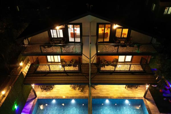 ''Разрешение на жилье Министерства культуры и туризма, номер документа: 48-239'' Вилла La Perla расположена в районе Кирме деревни Олюдениз Фаралья и имеет 1 спальню для 2 человек. Эта вилла, расположенная в очень особенном районе, с видом, который не может насытиться своим видом и удовольствием, представляет собой особую виллу, где вы испытаете незабываемые моменты, сочетая бескрайнюю природу и вид на море с изысканным закатом. Вилла с крытым бассейном подходит для молодоженов и многодетных семей. Все детали были учтены для вашего комфорта на вилле, которая имеет джакузи в спальне. Кроме того, бассейн нашей виллы с деревянной архитектурой, сопровождаемой уникальным видом на море, полностью защищен. Он был тщательно разработан для наших гостей, которые ищут спокойствия на природе. Вилла, где вы будете просыпаться под пение птиц и завтракать на фоне пышного леса и моря, заставит вас почувствовать, что вы сделали правильный выбор, как только вы сделаете первый шаг с ее оборудованием, которое может полностью оправдать ваши ожидания от отдыха. 1-я спальня: Двуспальная кровать, джакузи, кондиционер Гостиная: мягкий уголок, кондиционер, телевизор Кухня: тостер, микроволновая печь, посудомоечная машина, холодильник, чайник. Сад: бассейн, шезлонги, зона барбекю, зонт.