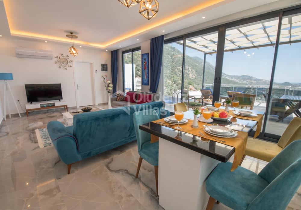 Unsere luxuriöse Ferienvilla zur Miete mit Meer-, Natur- und Stadtblick in Kalkan, der Perle des Mittelmeers, verfügt über 2 Schlafzimmer und eine Unterkunftskapazität von 4 Personen. Unsere Ferienvilla in der Gegend mit dem schönsten Blick auf unsere Stadt, die zum Symbol der Stille geworden ist, ist eine ideale Villa für unsere Hochzeitspaare und kleinen Familien.