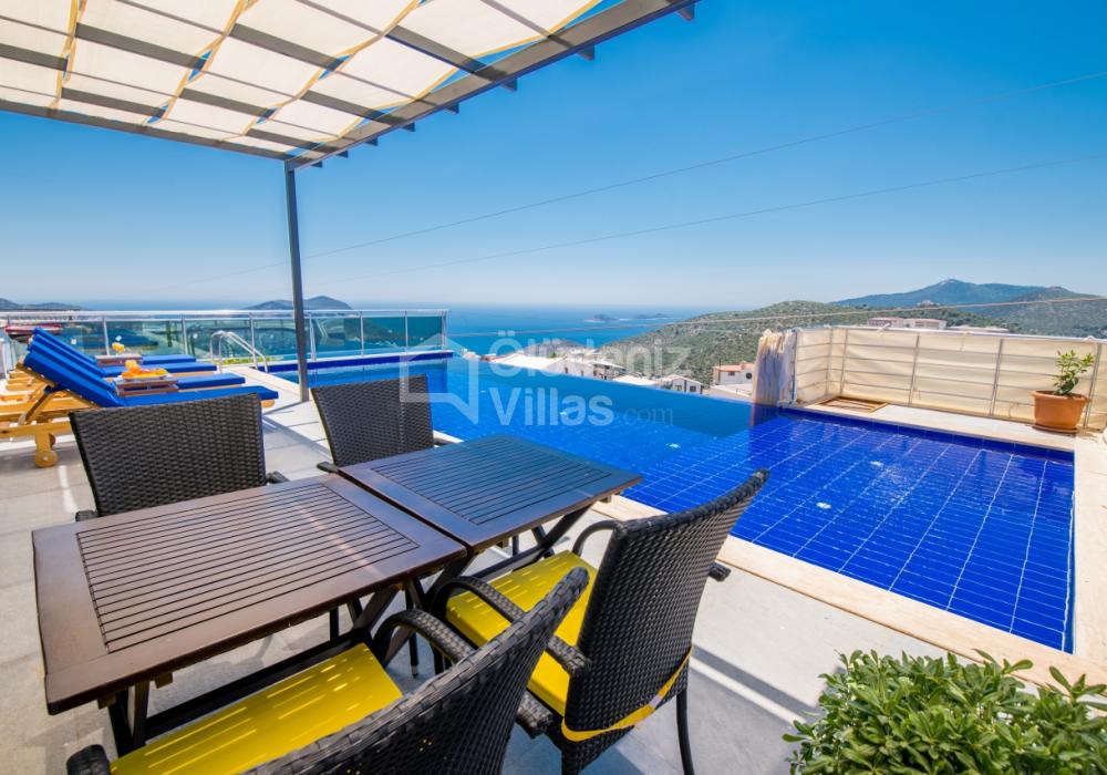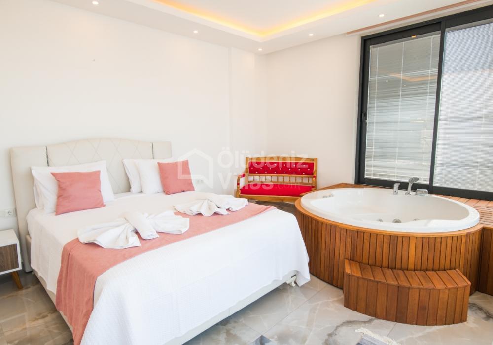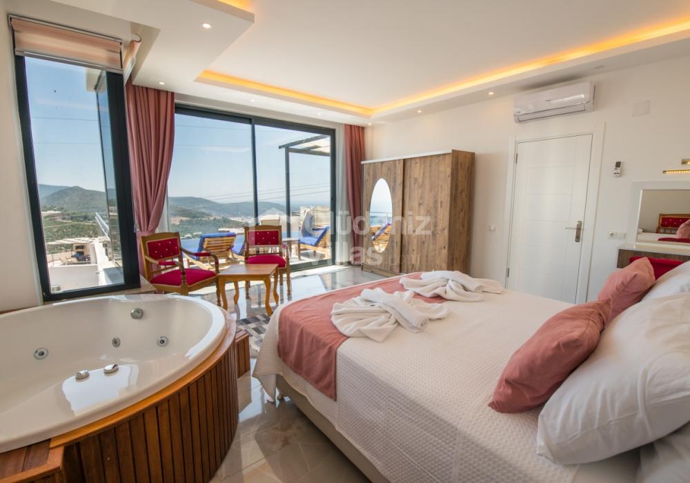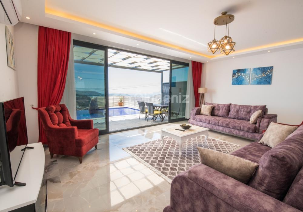 Notre luxueuse villa de vacances avec vue panoramique, qui a été achevée en juillet 2019, est une villa idéale pour nos couples en lune de miel et nos petites familles. Avec l'utilisation de meubles et d'électroménagers de qualité dans notre villa de luxe pour 5 personnes, aucune dépense n'a été épargnée pour le confort de nos précieux invités. Notre villa de vacances, située dans la zone avec la plus belle vue de Kalkan, symbole du silence, est à 6-7 minutes en voiture du centre de Kalkan. Vous pouvez louer notre villa, qui ajoutera de la couleur à vos vacances avec son jacuzzi privé dans la chambre, sa vue magnifique et son design luxueux, et vivre des vacances inoubliables.
