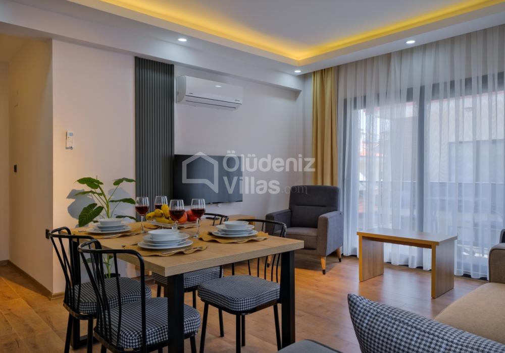 Bien que l’appartement ne dispose pas de piscine privée, sa proximité avec la plage d’Ölüdeniz et les magnifiques baies de Fethiye permet aux invités de profiter de la mer et de la nature. Les excursions en bateau, les randonnées et les activités d’exploration à proximité rendent les vacances à la fois actives et agréables.