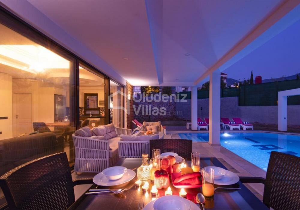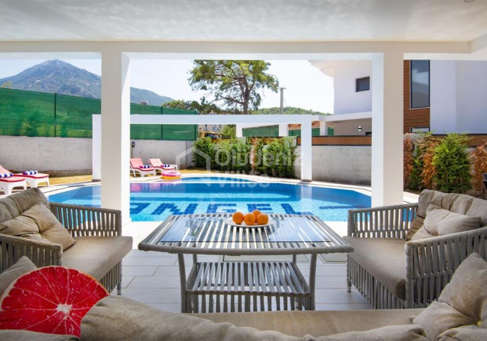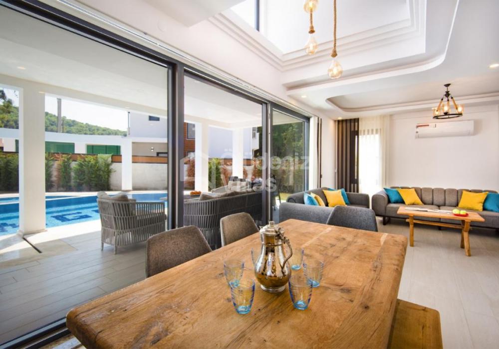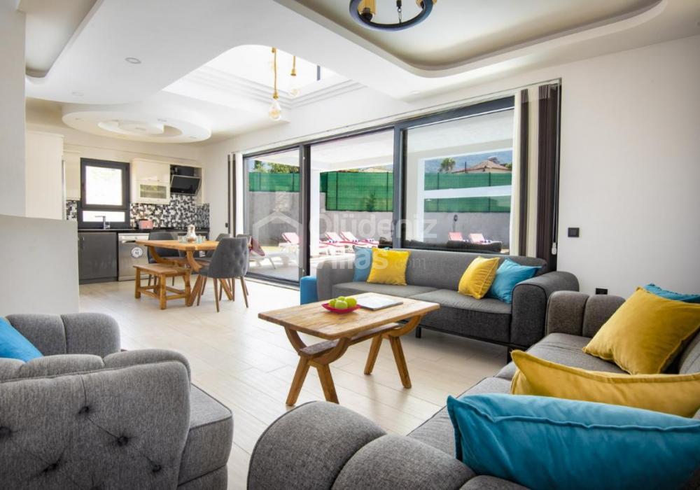 Гостиная: Гостиная, WC, спутниковый ресивер, LCDTV, DVD, кондиционер, обеденный стол, стулья и выход к бассейну.