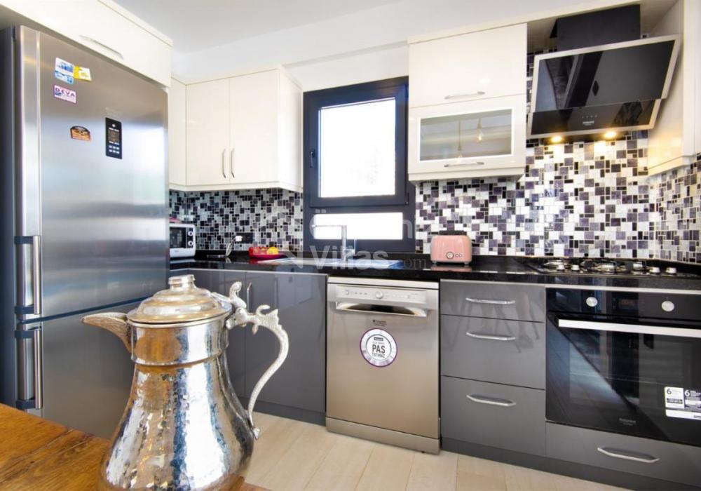 Кухня: холодильник, духовка, микроволновая печь, стиральная машина, посудомоечная машина, 4-х конфорочная плита, электрочайник, электровеник, тостер, набор посуды на 8 человек, сковороды, кастрюли, столовые приборы и другое кухонное оборудование.