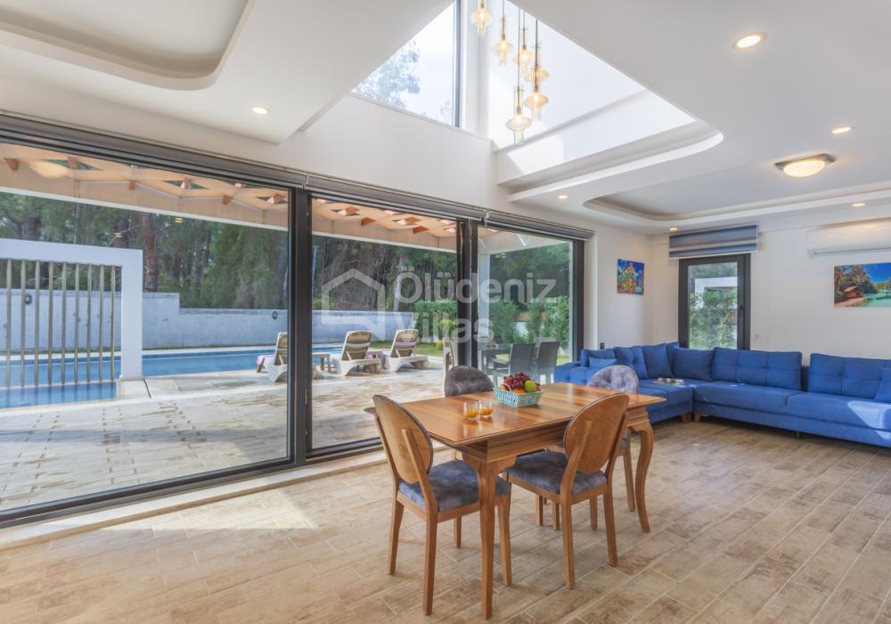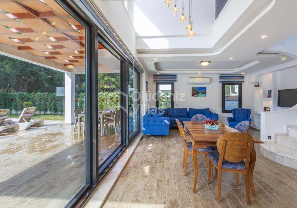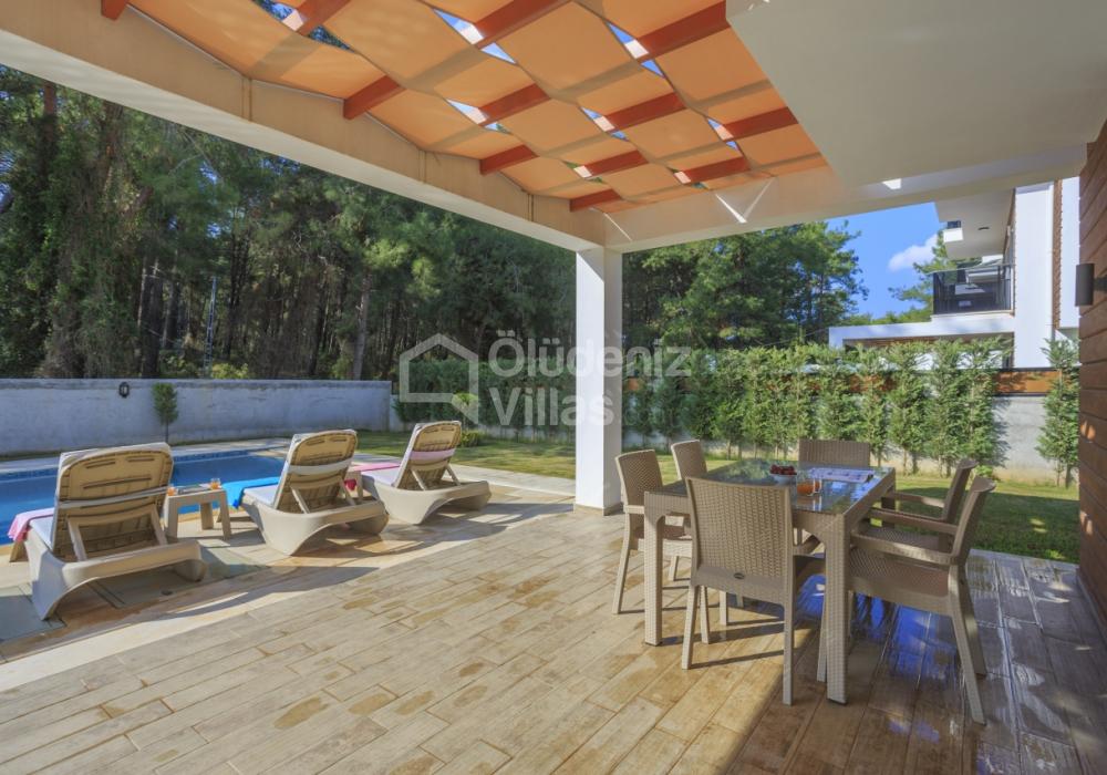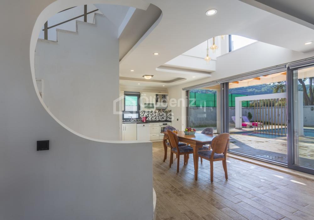 Вилла имеет открытую планировку на первом этаже с входной зоной, гардеробной и большой террасой, ведущей к бассейну и саду.