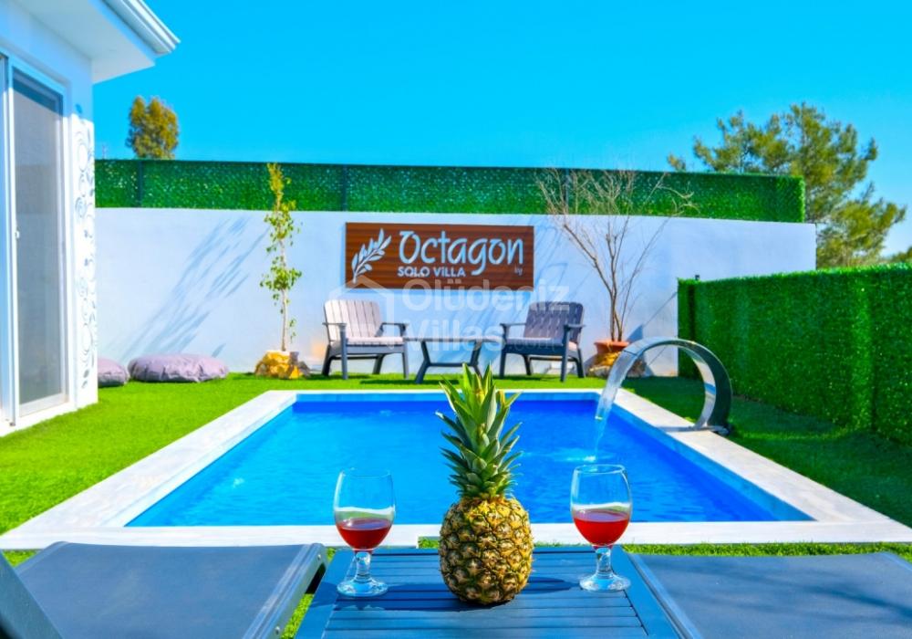 Наша вилла Octagon villa 1, которая выделяется своим уникальным дизайном, была завершена в первую неделю июля 2022 года и предлагает отличное размещение в Фетхие. Наша вилла с консервативной концепцией — идеальный выбор для молодоженов. Наша вилла с высокими потолками благодаря своей архитектуре предлагает очень просторные помещения, несмотря на то, что ее площадь составляет 50 квадратных метров.