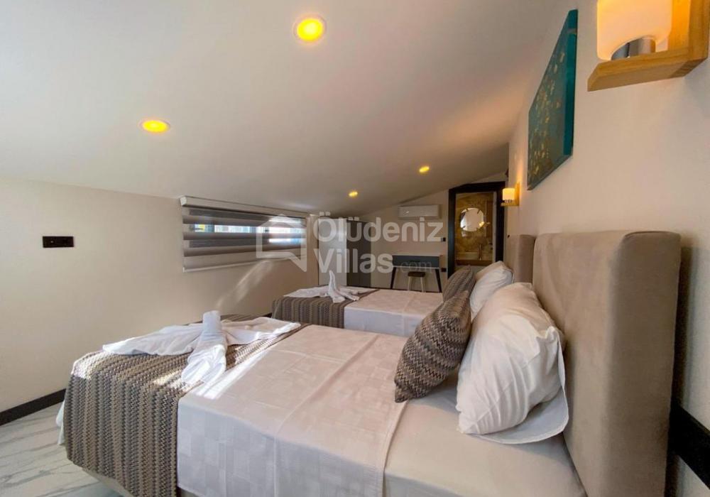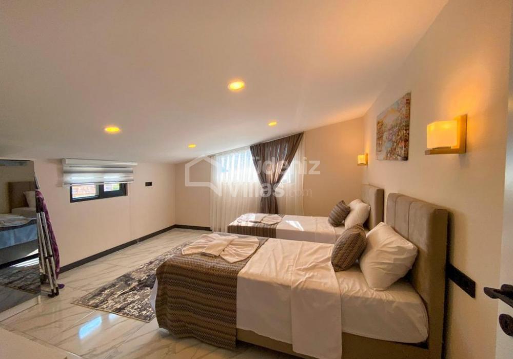 Откройте для себя идеальное сочетание роскоши и комфорта на наших очаровательных виллах в Фетхие Олюдениз. Эти виллы, каждая с четырьмя спальнями, джакузи в главной спальне и современной гостиной, предлагают размещение до 8 человек. Вы можете получить свой собственный особенный спа-салон с турецкой баней, сауной и крытым бассейном, где вы почувствуете себя особенным. Для тех, кто любит отдых на свежем воздухе, в саду каждой виллы есть приятная зона отдыха и бассейн, где можно освежиться. Наши виллы идеально подходят для семей и групп друзей, которые хотят провести спокойный отдых на природе Олюдениз, в окружении великолепных сосновых лесов. Вам не придется жертвовать своим комфортом во время отпуска на наших полностью оборудованных виллах, которые будут отвечать вашим современным потребностям. Время, которое вы проведете здесь, избавит вас от стресса повседневной жизни и заставит вас почувствовать себя отдохнувшим.