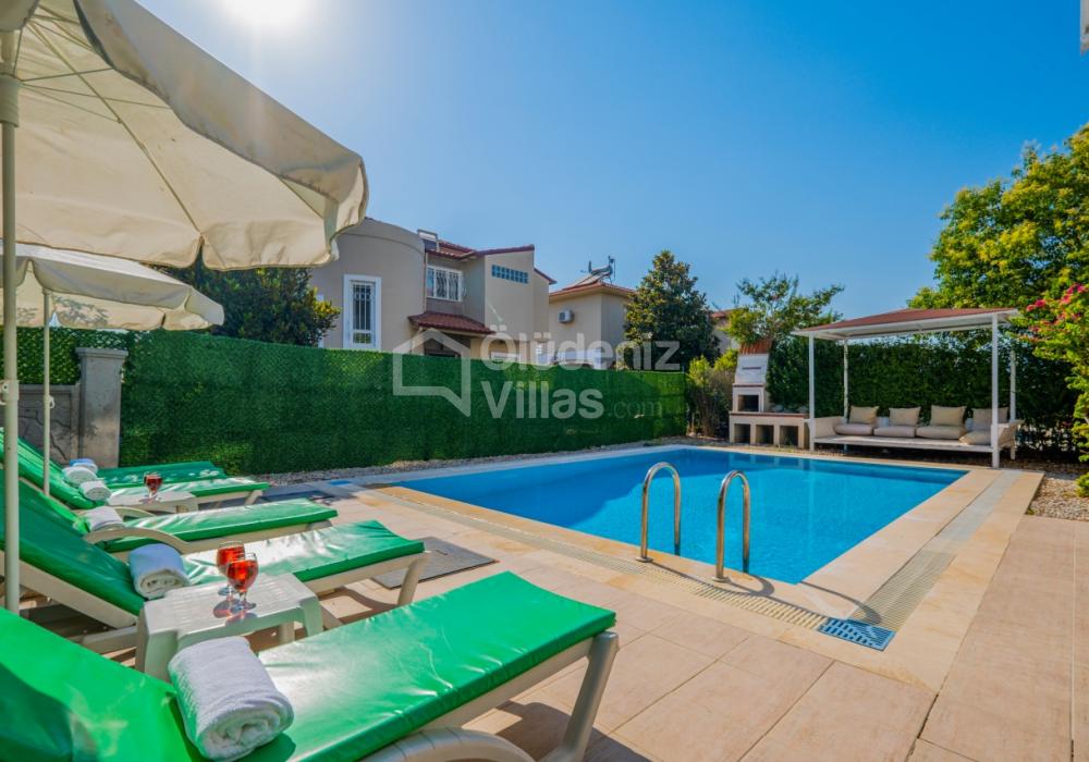 Вилла Safran состоит из 4 спален и 6 вилл, с общим бассейном и естественным красивым садом, расположенным в районе Чалыш, одном из самых популярных туристических курортов Турции. Он находится недалеко от развлекательных центров и Фетхие. Он находится всего в 900 метрах от уникально красивого пляжа Чалыш, где можно наблюдать закат на земле. На вилле Saffron полы с подогревом.