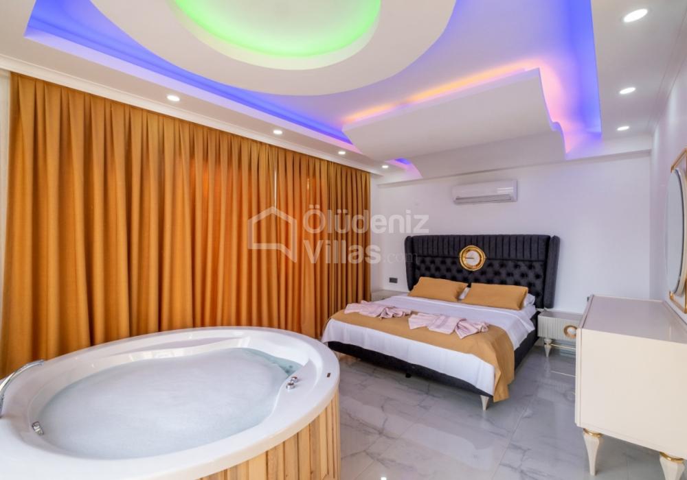 1-я спальня: двуспальная кровать, джакузи, прикроватная тумбочка, кондиционер, косметический столик с зеркалом, туалет, ванная комната.
