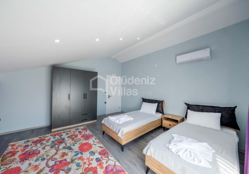 4. Спальня: Две односпальные кровати, кондиционер, тумбочка, шкаф.