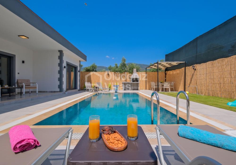 Эта вилла расположена в Фетхие-Каракулья. К услугам гостей 2 спальни и вместимость 4 человека. Наша вилла с полностью защищенным бассейном и садом с видом на природу подходит для семей и молодоженов.