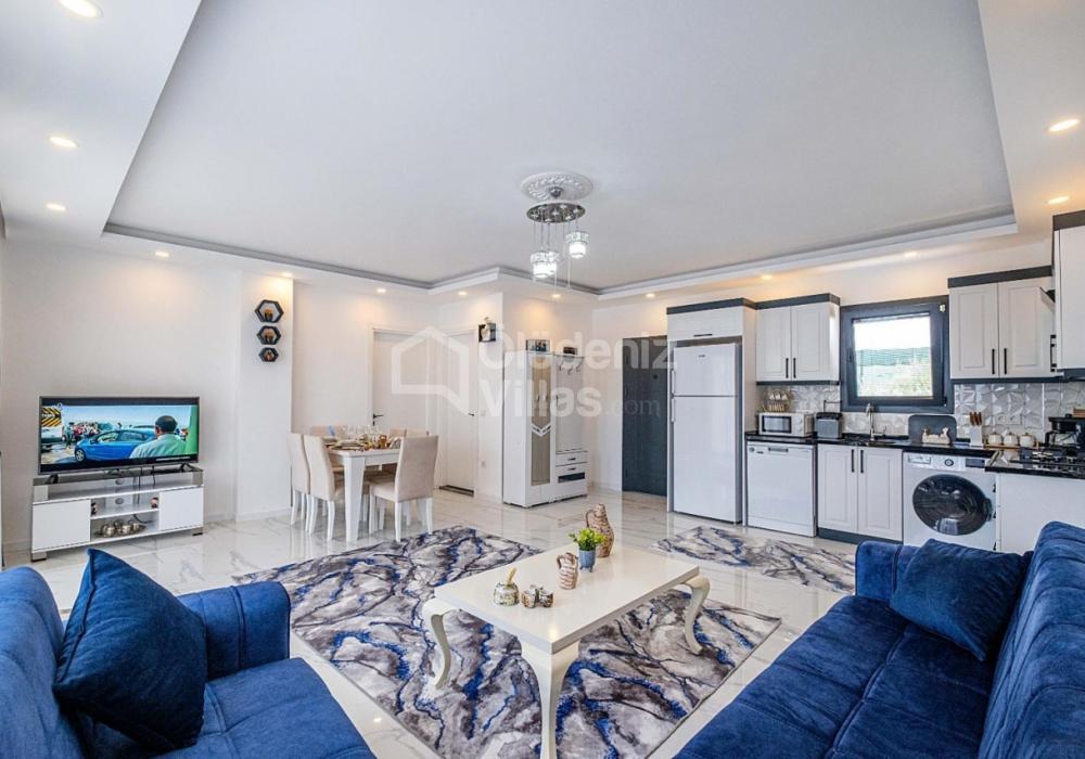Гостиная: Группа отдыха, журнальный столик, телевизор, кондиционер, обеденный стол.
