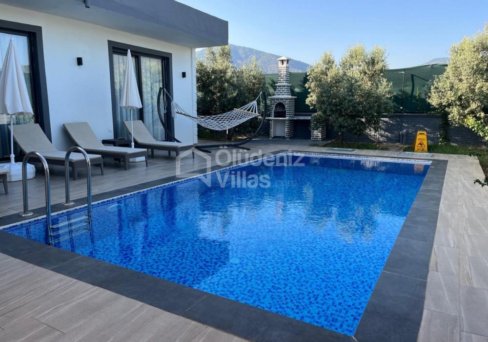 Сад: Бассейн, шезлонги, зона отдыха, барбекю.