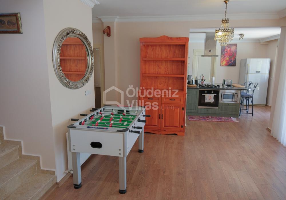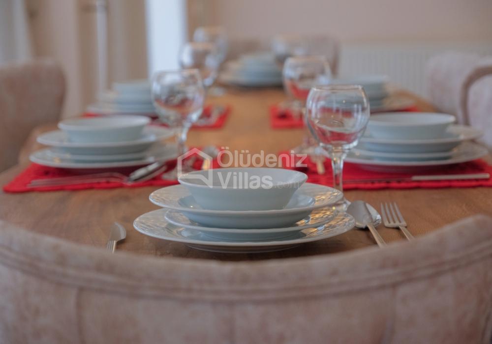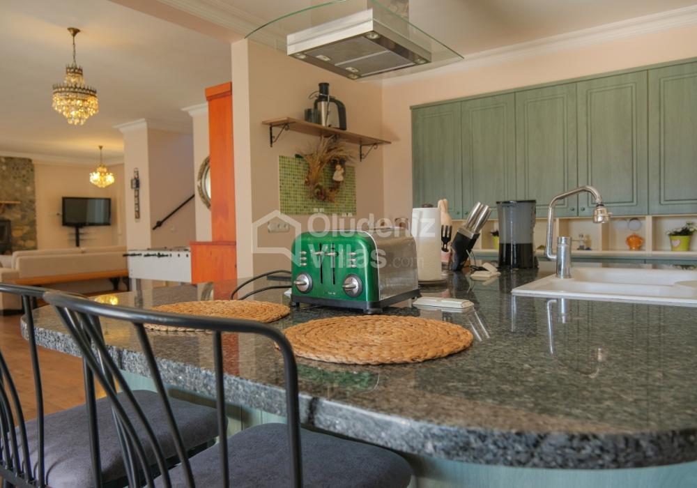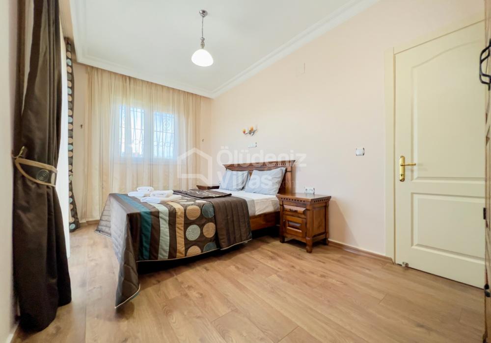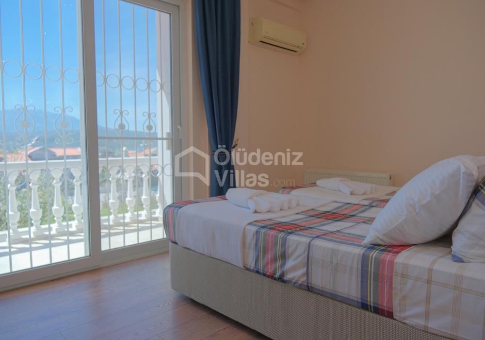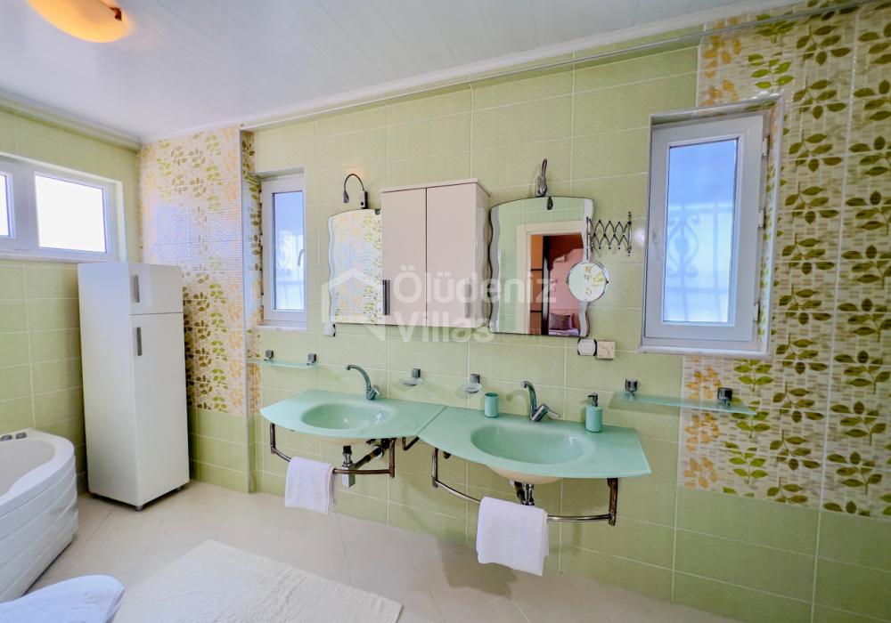 На нашей вилле 5 спален. В первой спальне есть двуспальная кровать, ванная комната, джакузи в ванной комнате, кондиционер и гардеробная. Во второй спальне есть две односпальные кровати и кондиционер. Напротив этой комнаты также есть туалет. Третья спальня имеет двуспальную кровать и кондиционер. В четвертой спальне две односпальные кровати, туалет-душ и кондиционер. В пятой спальне установлена ​​односпальная кровать. В общей зоне; Есть открытая кухня-гостиная, три кондиционера, телевизор и 2 санузла-душа.