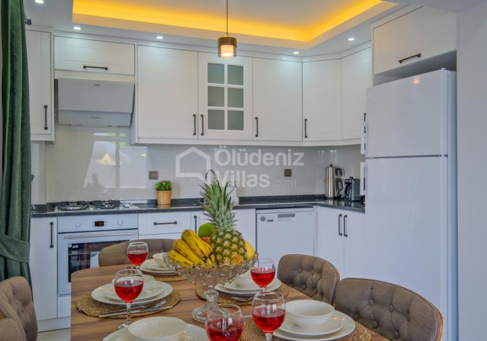 Имеется 1 гостиная, 1 гостиная, кухня и туалет: кухня-столовая имеет современную гостиную, телевизор, кондиционер и прямой выход на террасу у бассейна. Современная открытая кухня оснащена холодильником, посудомоечной машиной, 3 плитами, тостером, чайником, кофемашиной, кухонной техникой и обеденным столом на 6 человек.