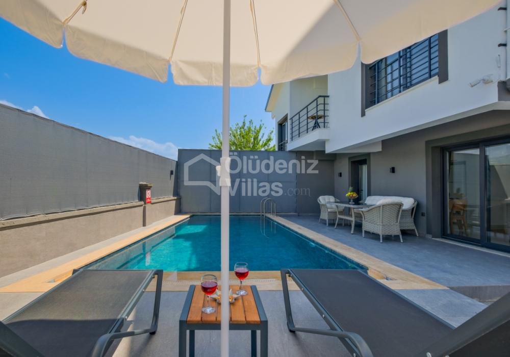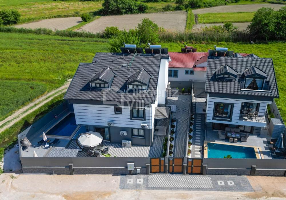 Наша вилла, расположенная в тихом месте, приветствует вас, наших уважаемых гостей, шезлонгами у бассейна и в саду, зоной отдыха и качелями в саду, чтобы обеспечить вам приятный отдых вдали от суеты и суеты. город.