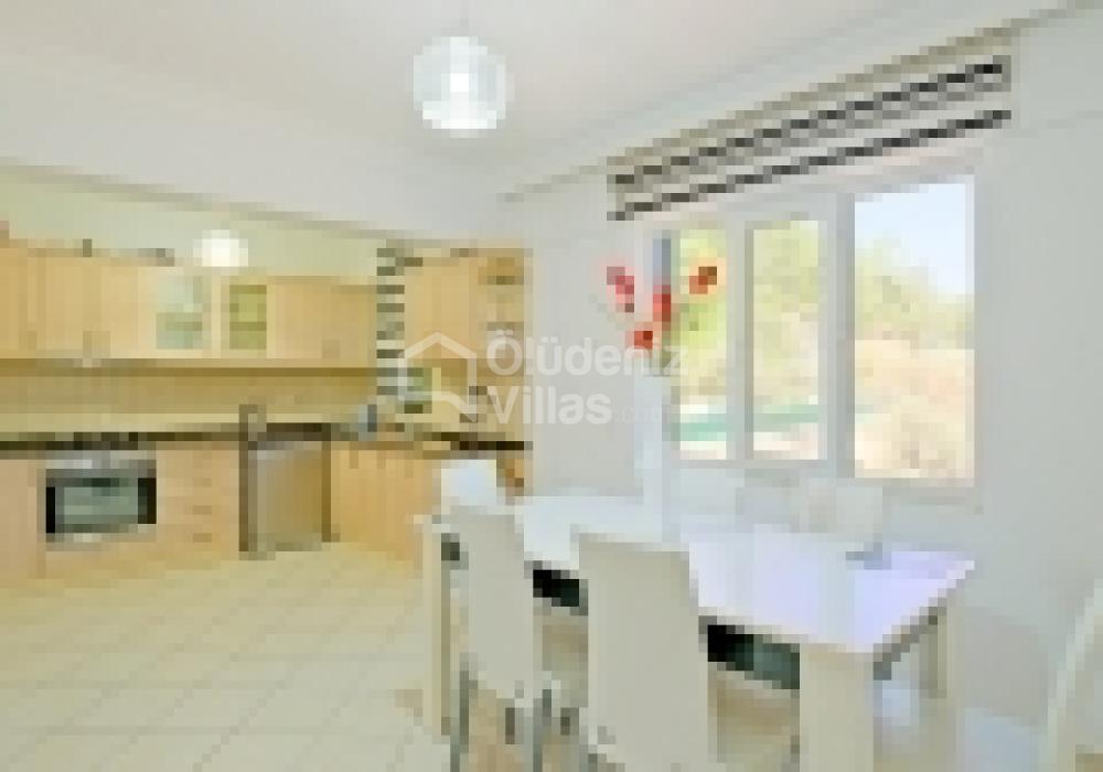 Villa, modern mimarisi ve geniş iç yaşam alanlarıyla dikkat çeker. Toplamda 3 yatak odası ve 2 banyo ile 6 kişiye kadar konaklama kapasitesine sahiptir. Açık plan mutfak, salon ve yemek alanı bir arada tasarlanmış olup, ferah ve aydınlık bir iç ortam yaratılmıştır. Mutfakta buzdolabı, fırın, ocak, mikrodalga, bulaşık makinesi, çamaşır makinesi, kahve makinesi ve tost makinesi gibi tüm temel ihtiyaçlar mevcuttur. Ayrıca villa genelinde ücretsiz Wi-Fi, uydu TV, ve klima gibi olanaklar da sunulmaktadır.
