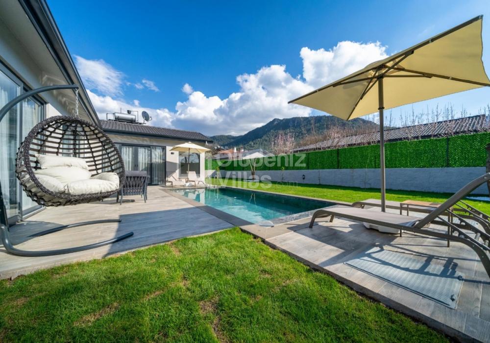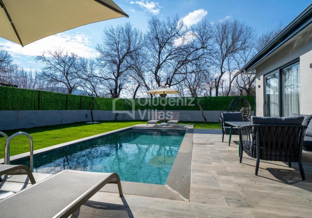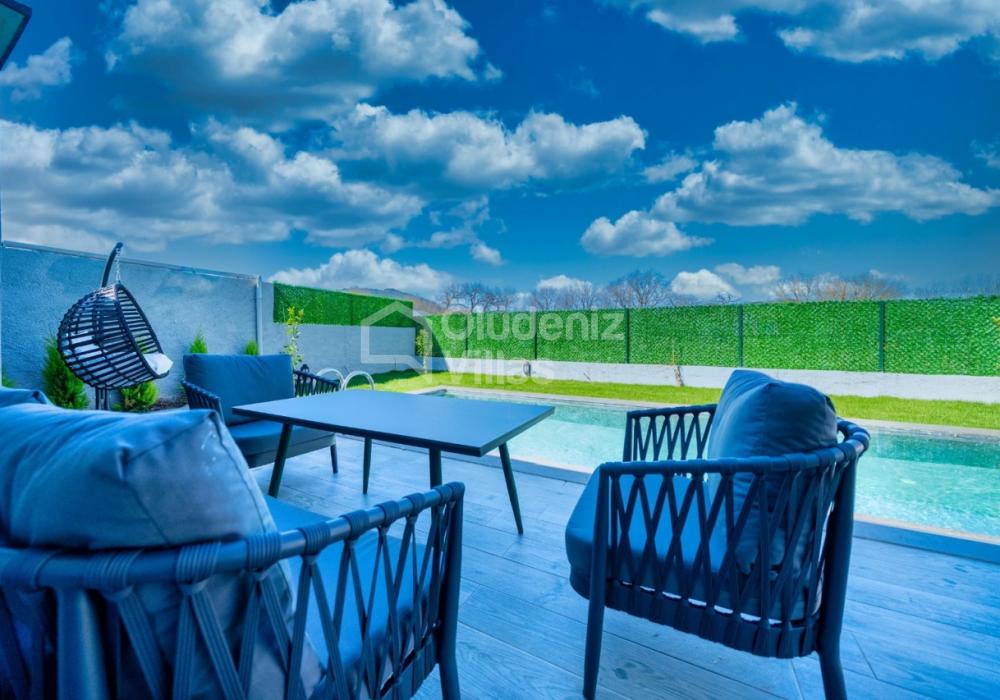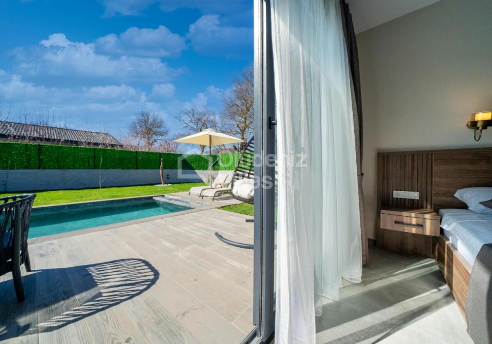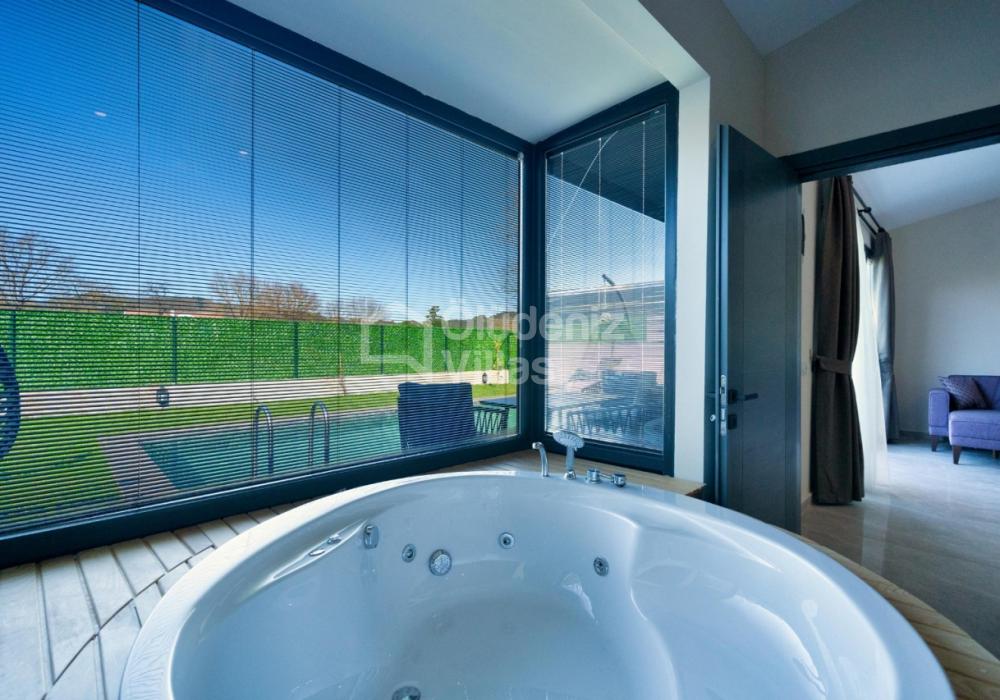 Villanın iç ve dış mekanı oldukça modern tasarlanmış olup havuz alanı korunaklıdır. Mahremiyetine önem veren misafirlerimiz için oldukça doğru bir tercihtir. Ebeveyn yatak odasında bulunan jakuzi ile doğa manzarası eşliğinde tüm yıl beklediğiniz keyfi yaşayabilirsiniz.