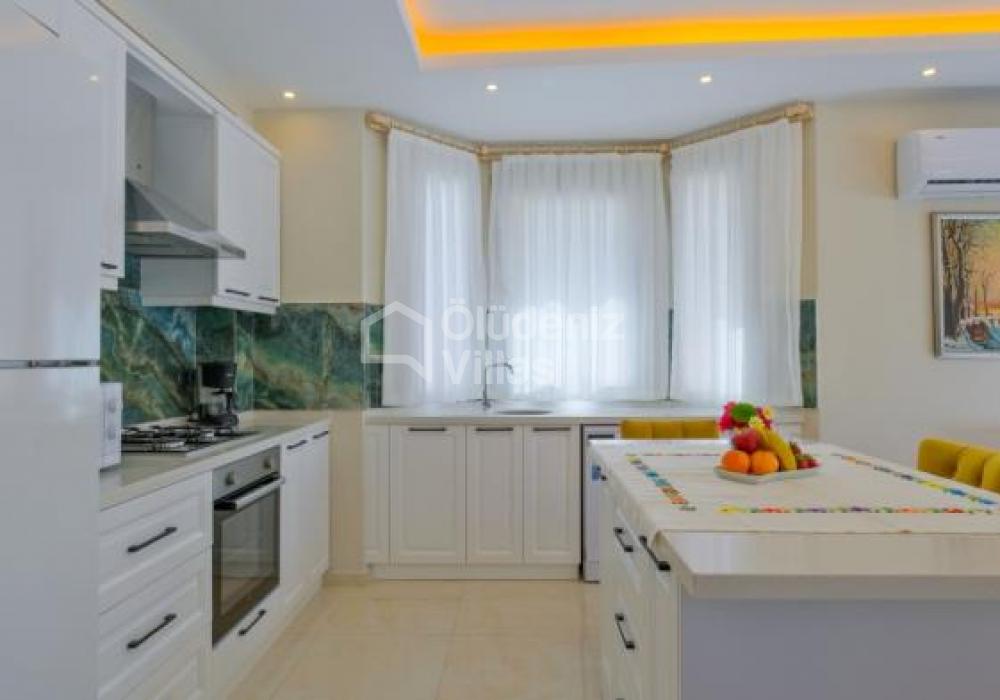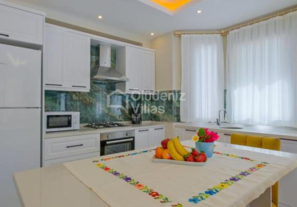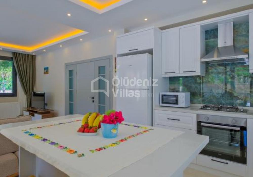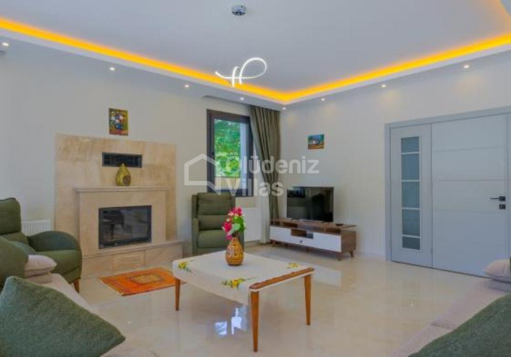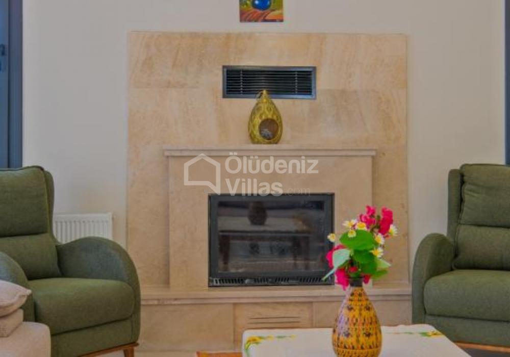 Açık mutfak planlıdır ve 1 adet şömineli büyük salon (oturma odası) vardır.