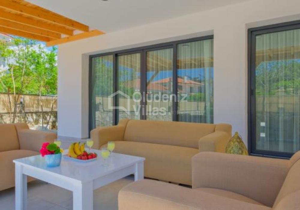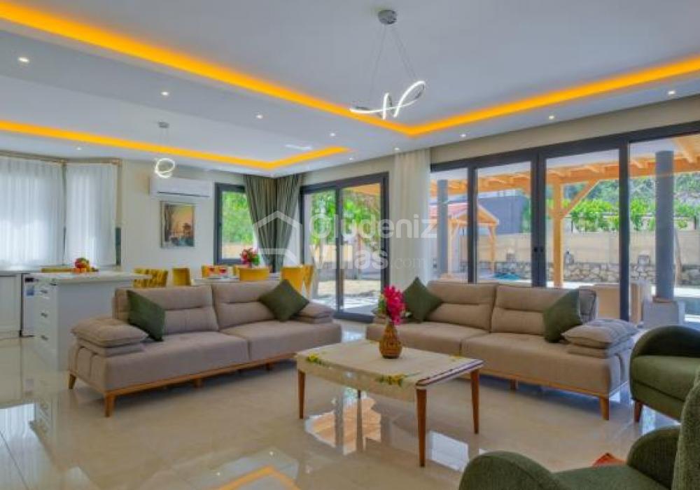 Salonunda 8 Kişilik yemek masası ve TV ile birlikte oturma grupları yer almaktadır.