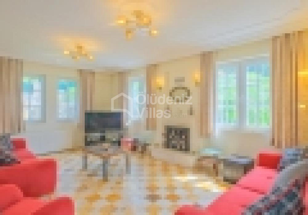Salon: LCD TV, uydu yayını, şömine, klima, oturma grupları
